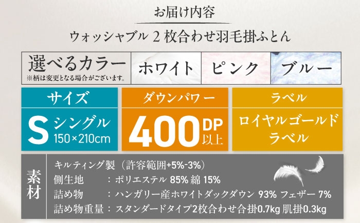 シングル ウォッシャブル2枚合わせ羽毛掛ふとん【エスプレ/超増…