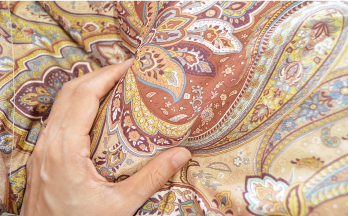 羽毛ふとんの側生地には、高機能ホルミシス特殊素材と軽量発熱素材フィルサーモ(R)、中羽毛には高級ハンガリー産ホワイトグースダウンを使用しています。