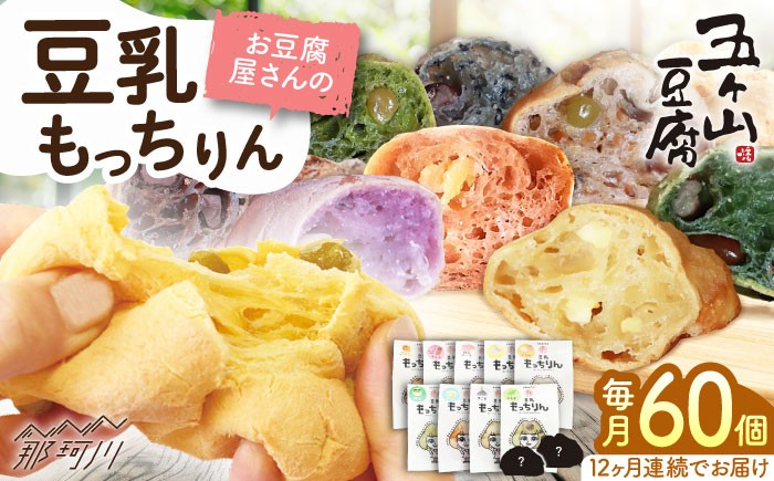 もちもち新食感の豆乳ぱんがお得に味わえる贅沢なセット 【全12回定期便】お豆腐屋さんの豆乳もちもちぱん 60個セット<株式会社愛しとーと>那珂川市 パン 豆乳 ヘルシー 豆乳パン 菓子パン [GBA024]