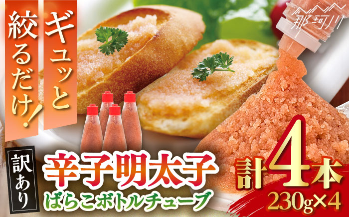 地域の生産者応援の品 ギュッと絞るだけ!簡単・便利な明太子! 【訳あり】 辛子明太子ばらこボトルチューブ 920g(230gx4本)<株式会社E2C>那珂川市 [GEO005]