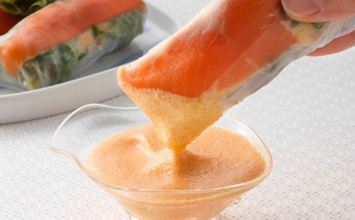 辛子明太子にガーリック。インパクトのあるふたつの素材でできためんたいマヨネーズは、意外にも優しい風味。それは、敢えてふたつの素材をぶつけずに、辛子明太子を主として、ガーリックベースのマヨネーズを使うという小技が効いているから。季節を問わず、どんなときにも食べる喜びに導かれるお味。