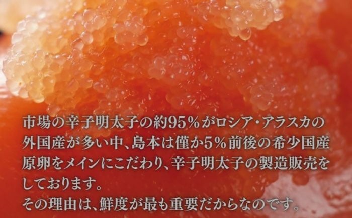 一粒一粒にいきわたった昆布風味と程よくマッチした辛味が絶妙 【博多辛子明太子の島本】希少国産卵・無着色昆布漬け辛子明太子一本物240g<株式会社島本食品>那珂川市 [GER025]