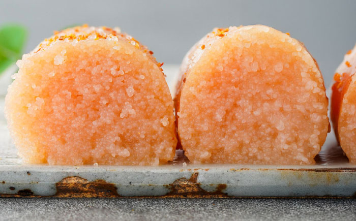日本酒や本みりん、かつおなどの天然調味料を主体とした調味液で明太子を浸します。