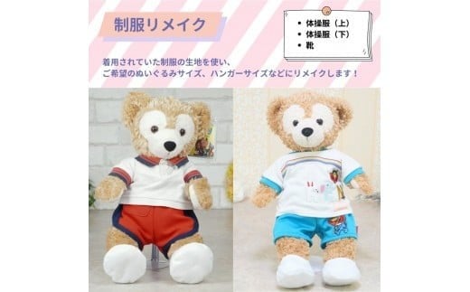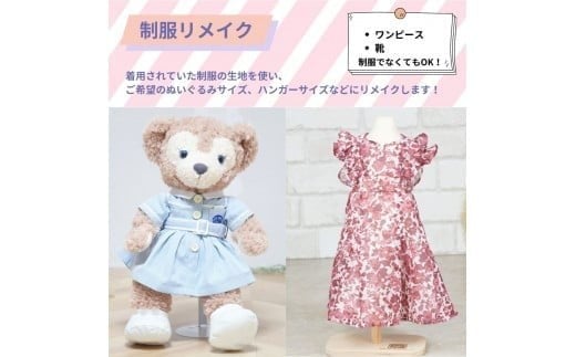 お子様の制服姿の記憶をリメイクしていつでも思い出すことができます。 思い出の詰まった制服をなかなか処分できず、長年タンスに保管されてませんか?捨てられずにしまい込んでいた大切な思い出が詰まった制服を、お気に入りのぬいぐるみサイズなどにリメイクして、ずっと身近に置いておくことができます。 一目見て一瞬で思い出が蘇るように、1着1着バランスよく心をこめてリメイクいたします。 着用されていた制服をお送り頂き、その生地を使って、ご希望のぬいぐるみサイズ、ハンガーサイズなどにリメイクいたします。 高い技術を持った職人が1着1着心をこめて、制服に詰まった思い出が「カタチ」になるようにリメイクします。リボンやタイはサービスでリメイクいたします。
