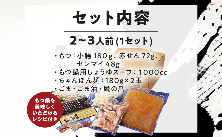 | 容量 | もつ(小腸180g・赤せん72g・センマイ48g)300g スープ(醤油または味噌)1000cc ちゃんぽん麺 180g×2玉 ごま油・鷹の爪・ごま |