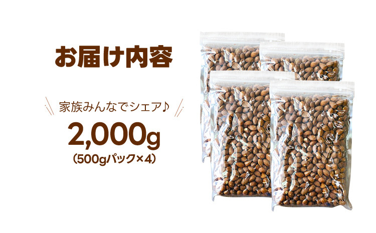 素材を活かしたこだわりの焙煎方法でローストしたアーモンドの味をお楽しみください。 素焼き アーモンドホール 500g×4個 アーモンド 無塩 無添加 無油 ヘルシー ロースト ナッツ ビュート種