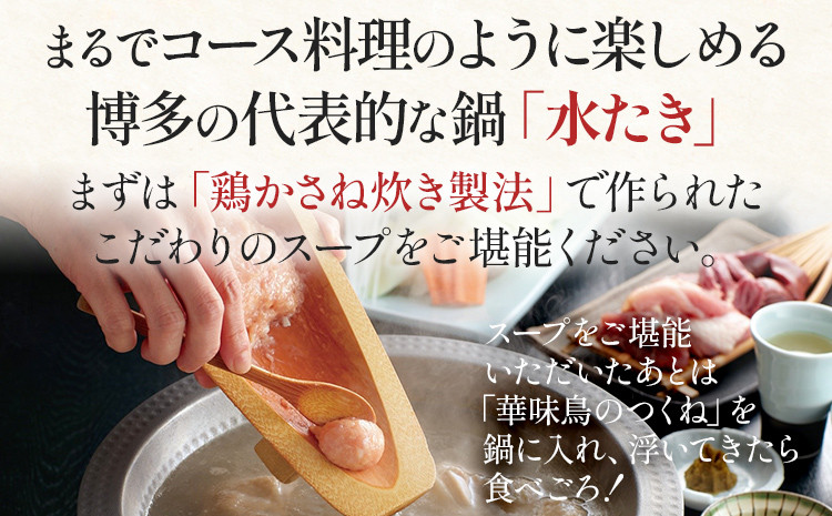 博多・中洲に本店を構え、大阪・東京にも店舗展開する「水たき料亭博多華味鳥」の吟味されたスープと素材をご家庭でお楽しみいただけます。