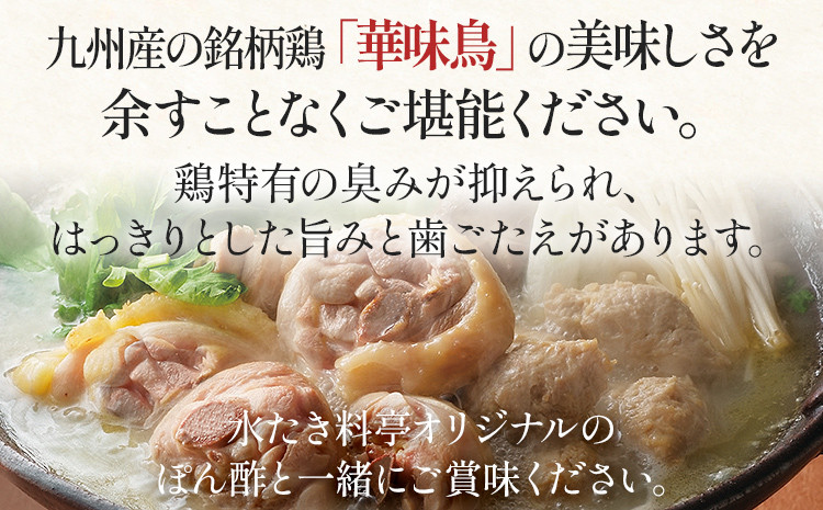 水たき料亭オリジナルのぽん酢と一緒にご賞味ください。 博多華味鳥 水たきセット(ちゃんぽん麺付き) 水たき 水炊き ちゃんぽん麺 ちゃんぽん セット 博多華味鳥