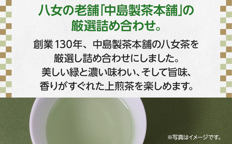 創業130年、八女で茶製造を行っている中島製茶本舗の八女茶を厳選し詰め合わせにしました。