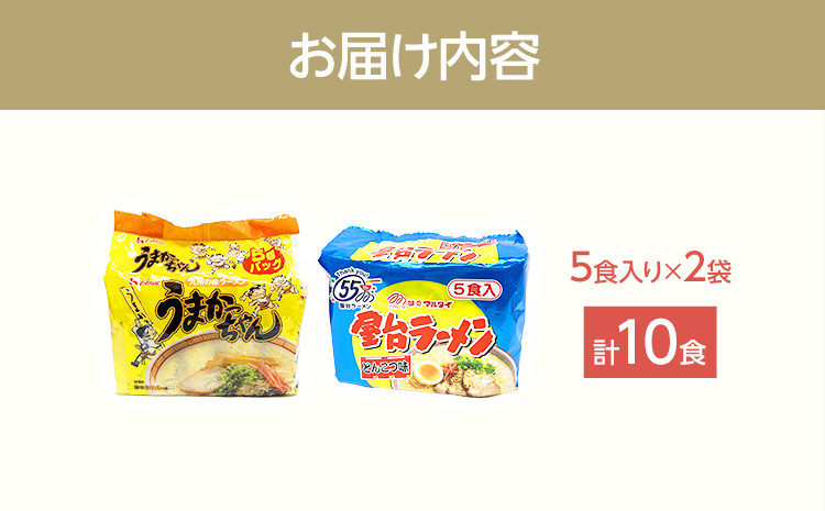 九州で愛され続けるとんこつ袋ラーメンの代名詞!うまかっちゃんと屋台ラーメン 九州の味 豚骨ラーメン2種×5食セット(合計10食:うまかっちゃん5食・屋台ラーメン5食) お取り寄せグルメ お取り寄せ 福岡 お土産 九州 福岡土産 取り寄せ グルメ 福岡県