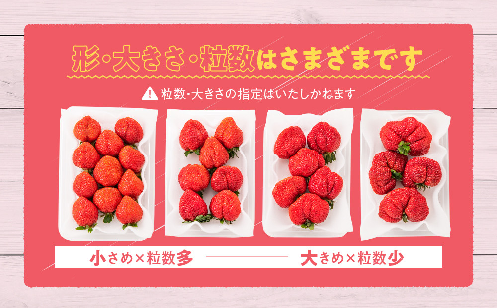 形が不揃いと記載がありましたが、とても綺麗な形のいちごが届きました。子どもたちと美味しくいただきました。