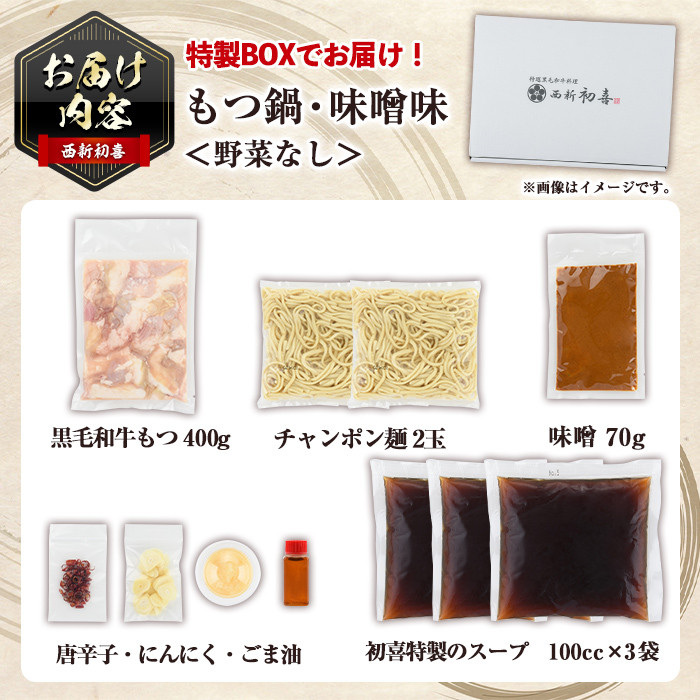 【創業八十数余年の実績と本物の味】西新初喜の黒毛和牛もつ鍋がご自宅で味わえます! <味噌味・野菜なし>もつ鍋セット(2~3人前) もつ鍋 モツ鍋 黒毛和牛 牛肉 牛 お鍋 鍋 味噌味 みそ味 お土産 ギフト プレゼント 贈り物 お歳暮 冷蔵 ちゃんぽん麺 チャンポン 加工品 2人前 3人前【西新初喜】as09-005