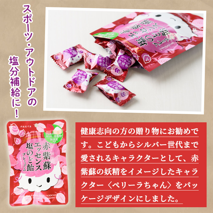 一粒で赤紫蘇ジュースの味わいがお口にひろがり潤す赤紫蘇エッセンス塩のど飴です。 赤紫蘇エッセンス 塩のど飴 プレミアム(5袋) のど飴 のどあめ 飴 お菓子 おやつ 個包装 小分け 常温 常温保存 アウトドア 熱中症対策 塩飴【パルセイユ】as04-009