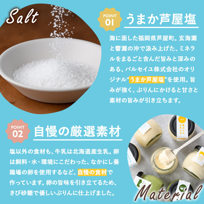 福岡県芦屋町の海の魅力を詰め込んだ、塩をかけて食べるぷりん! 自家製塩ぷりんオリジナルセット(9個) ぷりん プリン デザート スイーツ おやつ 芦屋塩 ギフト プレゼント 贈答用 贈り物 瓶入り 抹茶 塩ぷりん 塩プリン 食べくらべ 食べ比べ セット 詰め合わせ カラメル 洋菓子【あしやんぷりん】as28-001
