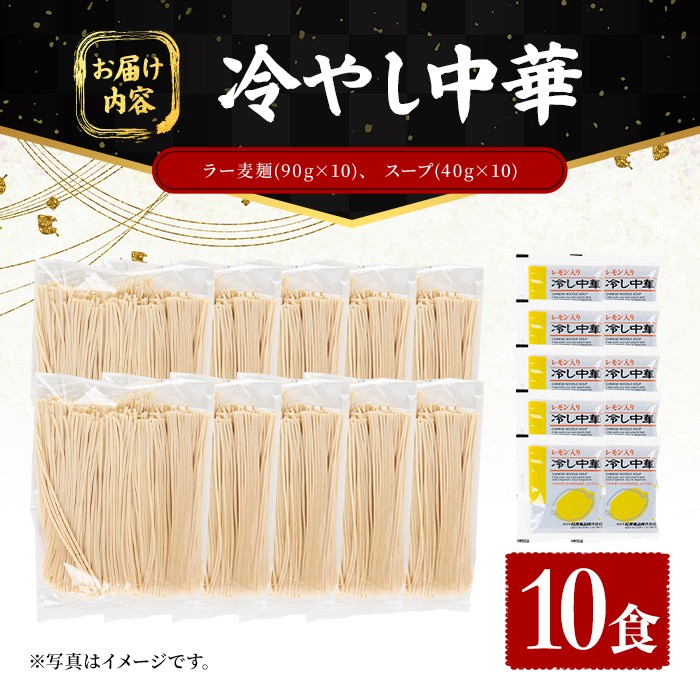 レモン風味のタレでさっぱり! ラー麦麺 冷やし中華 (10食) 麺 麺類 レモン風味 ラー麦 スープ 細麺 ストレート麺 生麺 簡単調理 夏 福岡県 【FUKUOKA MIOTSUKUSHI】as55-023