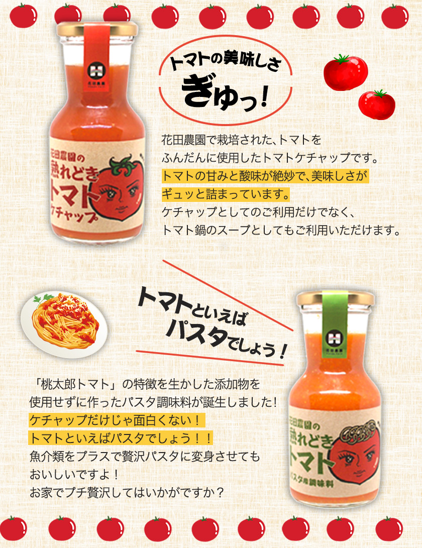 旬の野菜をシンプルに美味しく、素材だけでなく、製法にもこだわりました トマトケチャップとパスタ用調味料セット 花田農園《30日以内に出荷予定(土日祝除く)》