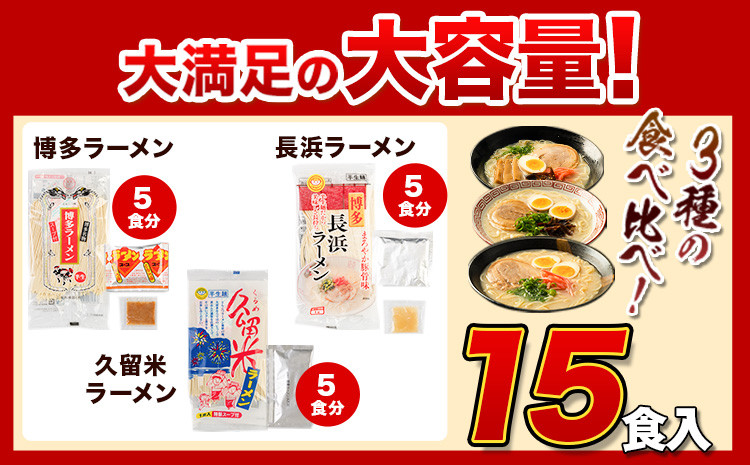 福岡県が誇るソウルフードを食べ比べ ラーメン とんこつ 15食 福岡ラーメン 食べ比べセット 豚骨 常温 常温保存 博多ラーメン 長浜ラーメン 久留米ラーメン 細麺 半生麺 シメ 〆 とんこつラーメン《30日以内に出荷予定(土日祝除く)》