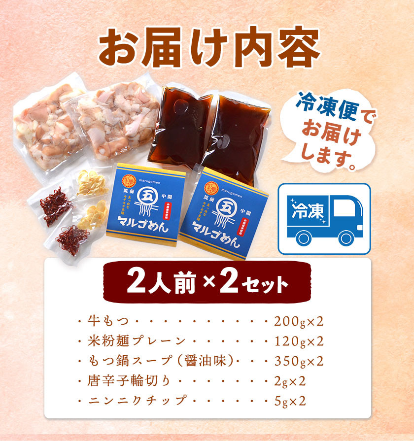 国産牛もつがたっぷり入った定番のしょうゆ味もつ鍋セット! もつ鍋醤油味 2人前×2セット 計4人前 国産牛 マルゴめん《30日以内に出荷予定(土日祝除く)》もつ鍋 醤油味 4人前 もつ モツ 鍋 なべ 鍋セット 冷凍