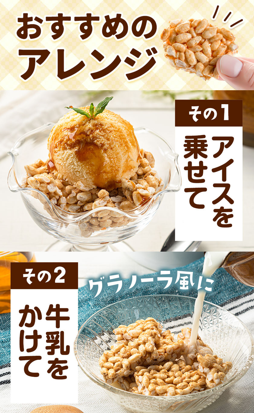 地場産品基準 告示第5条第3号に適合 適合理由:町内の作業所で、職人が手作業で製造しているおこし(米菓)。当該工程を経て完成した当該返礼品等の付加価値のうち8割以上が当該工程によるものであるため。