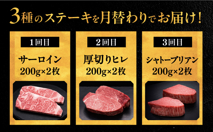 和牛ステーキ食べ比べセット ( サーロイン / ヒレ / シャトーブリアン ) 【A4ランク以上】【全3回定期便】博多和牛 食べ比べ ステーキ 定期便 ( サーロイン / ヒレ / シャトーブリアン ) 毎月400g(200g×2) 桂川町/久田精肉店 シャトーブリアン サーロイン ヒレ 希少部位 ステーキ セット シャトーブリアン 高級 ヒレ 和牛 サーロイン 福岡 九州 [ADBM139]