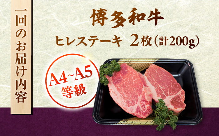 A5 A4ランクの評価を受けたヒレ肉をお届け致します。 【全3回定期便】【A5〜A4等級!】博多和牛 ヒレ ステーキ 2枚(計200g)桂川町/株式会社チクゼンヤ [ADBZ002]