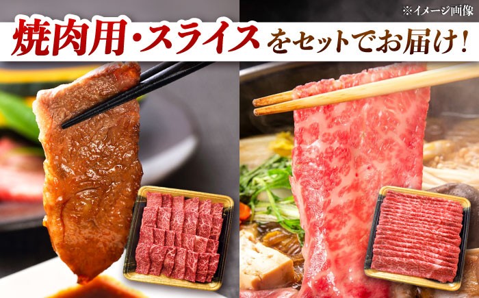 「博多和牛」のモモ肉を、焼き肉用とスライスの2パックセットでお届けします。