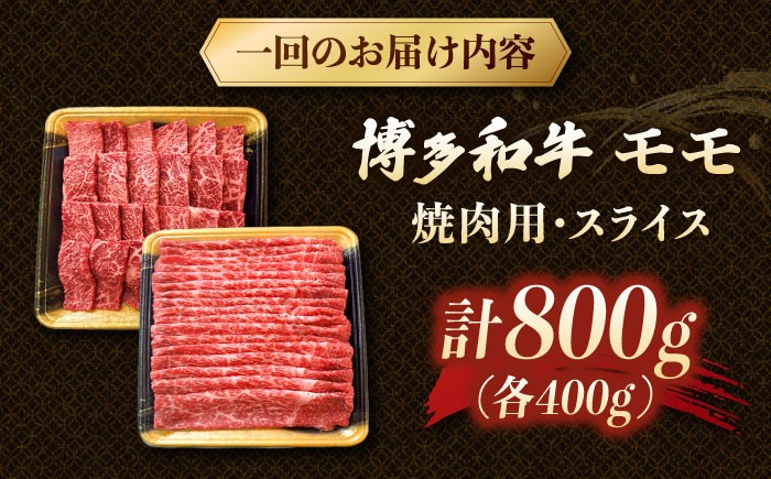 【3回定期便】博多和牛モモ焼肉用・スライス 800g(各400g) 桂…