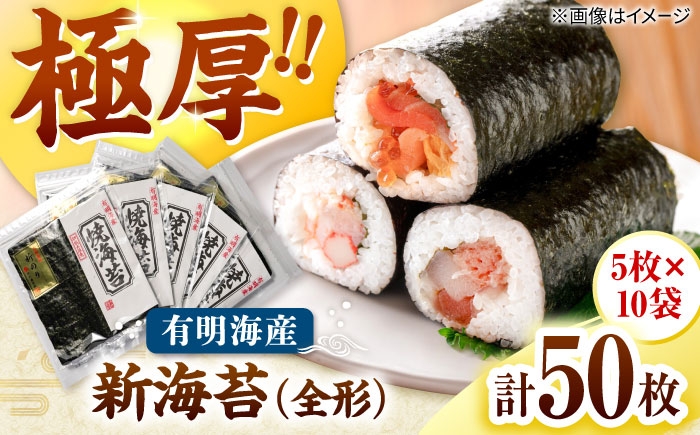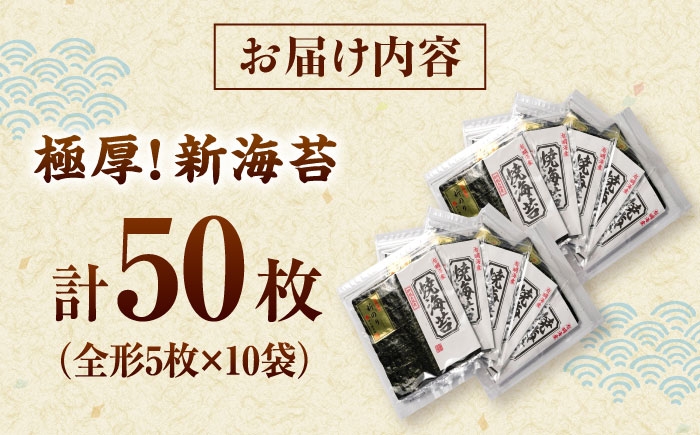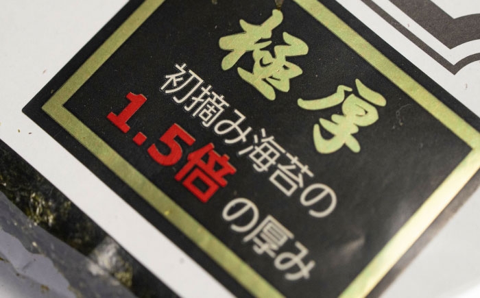 通常の厚さ(重さ)の1.5倍かつ今年の初摘みの新海苔です!自慢の逸品!! 極厚!!(厚みと重さ1.5倍)新海苔 焼海苔10袋セット 全形5枚×10袋 福岡有明のり 桂川町/株式会社木村食品 [ADCG050]
