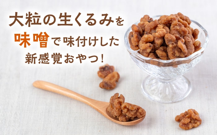 厳選された生くるみに、筑豊の老舗みそ蔵の米味噌をたっぷりと絡めました。