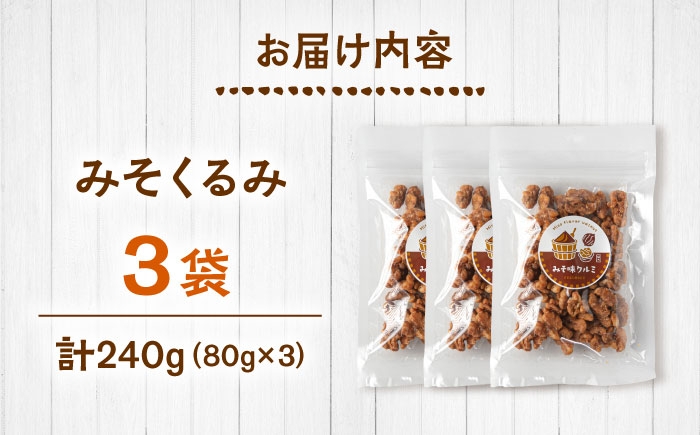 みそくるみ 80g×3袋▼ おやつ くるみ クルミ ジッパー付 小分け 食物繊維 美容 高タンパク 防災 非常食 備蓄 常温 保存 長期保存 災害対策 保存食 桂川町/株式会社福六 [ADAM071]