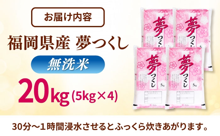 白米 無洗米 米 お米 ゆめつくし ご飯 ごはん 国産 福岡 送料無料 無洗米 夢つくし 20kg 精米 有限会社ファインリョーコク/桂川町 [ADCE019]