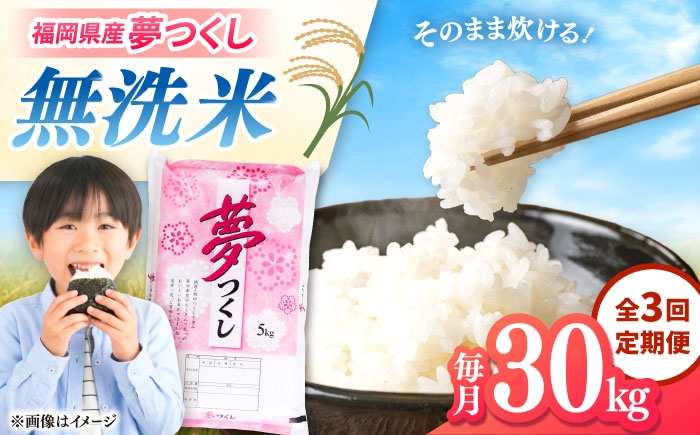 白米 無洗米 米 お米 ゆめつくし ご飯 ごはん 国産 福岡 送料無料 【全3回定期便】無洗米 夢つくし 30kg 精米 有限会社ファインリョーコク/桂川町 [ADCE023]
