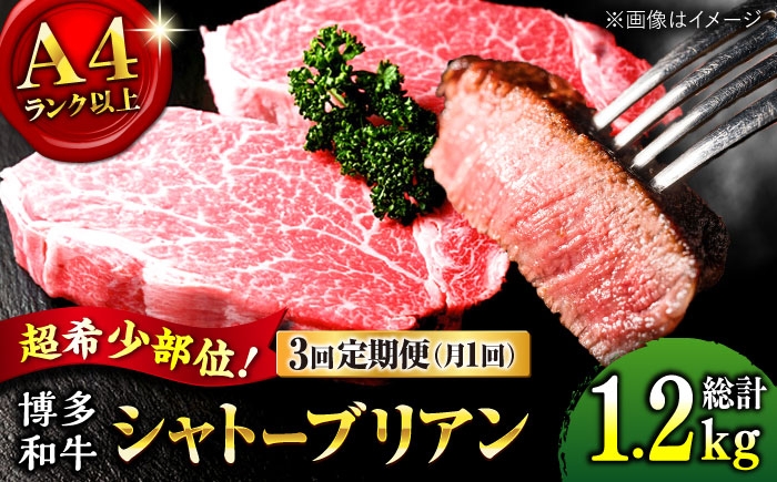 超希少部位。お早めにどうぞ 【全3回定期便】希少部位! 博多和牛 牛肉 ヒレ シャトーブリアン 400g(200g×2)桂川町/肉のくまもと屋 [ADCI003]