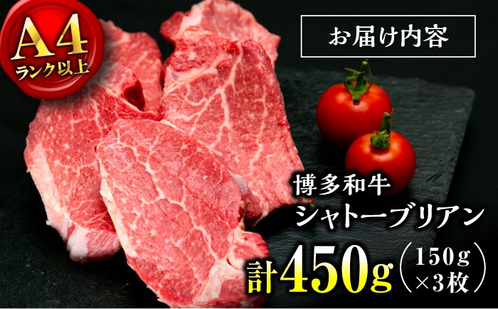牛肉 希少部位 シャトーブリアン 人気 博多 和牛 極上 赤身 ブランド ヒレ 福岡県産 博多和牛 シャトーブリアン 150g×3枚 (計450g) ▼ しゃとーぶりあん chateaubriand ヒレ ステーキ 赤身 フィレ ヒレ シャトーブリアン しゃとーぶりあん ステーキ 国産 和牛 牛肉 シャトーブリアン ヒレ肉 シャトーブリアン 人気 おすすめ ランキング 極厚 希少 高級 ご褒美 福岡 九州 桂川町/肉のくまもと屋 [ADCI012]