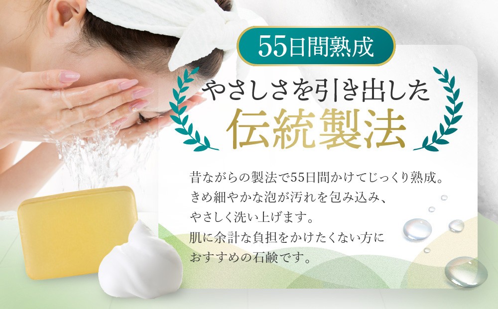 この動植物油脂+アルカリという基本製法は石鹸が発見された5000年前から今も変わりません。
