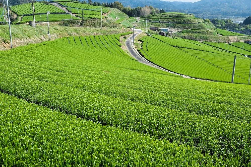 【かぶせ茶】4月上旬から5月初旬の新芽が芽吹く頃に寒冷紗や藁などを茶の木に被せ、1~2週間程度日光を遮る「覆下栽培」をします。光合成が抑えることでカテキンなどの渋み成分の生成が抑えられます。結果、アミノ酸等の旨み成分(テアニンなど)が通常の煎茶より多くなります。茶の渋みが苦手な方も美味しく飲んでいただけるお茶です。