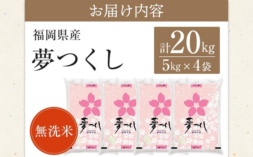 <令和7年産>福岡県産ブランド米「夢つくし」無洗米 計20kg【米 ブランド米 ブランド 白米 無洗米 夢つくし 令和7年産 家庭用 お取り寄せ お土産 福岡県産 取り寄せ グルメ 福岡県 筑前町 CE018】