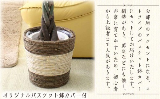 【観葉植物】幸福の木 8号 ストライプバスケット鉢カバー 高さ:…