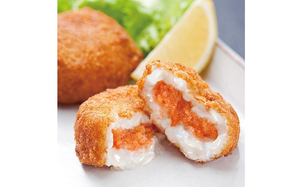 クリーミーなコロッケに無着色明太子をたっぷり包みました。