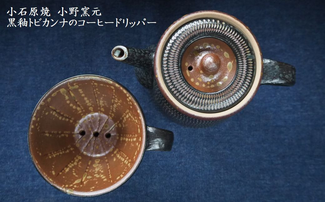 小石原焼黒釉トビカンナのコーヒードリッパー