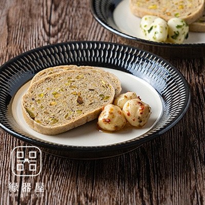 “引き立て上手”の飛びかんなプレートです AA30 小石原焼 カネハ窯 飛び鉋プレート【大】(黒×白ツヤ)
