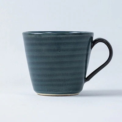 小石原焼の伝統技法である”飛びかんな”がぐるりとあしらわれたマグカップ。
