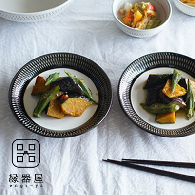 “引き立て上手”の飛びかんなプレートです。 AA98-S 小石原焼 カネハ窯 飛び鉋プレートセット【中】(黒×白ツヤ)