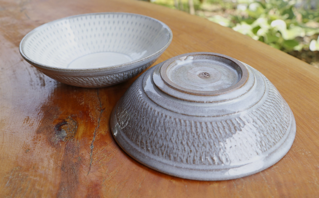 伝統的な技法と白釉の優雅な色合いが特徴の深皿2枚セットです。
