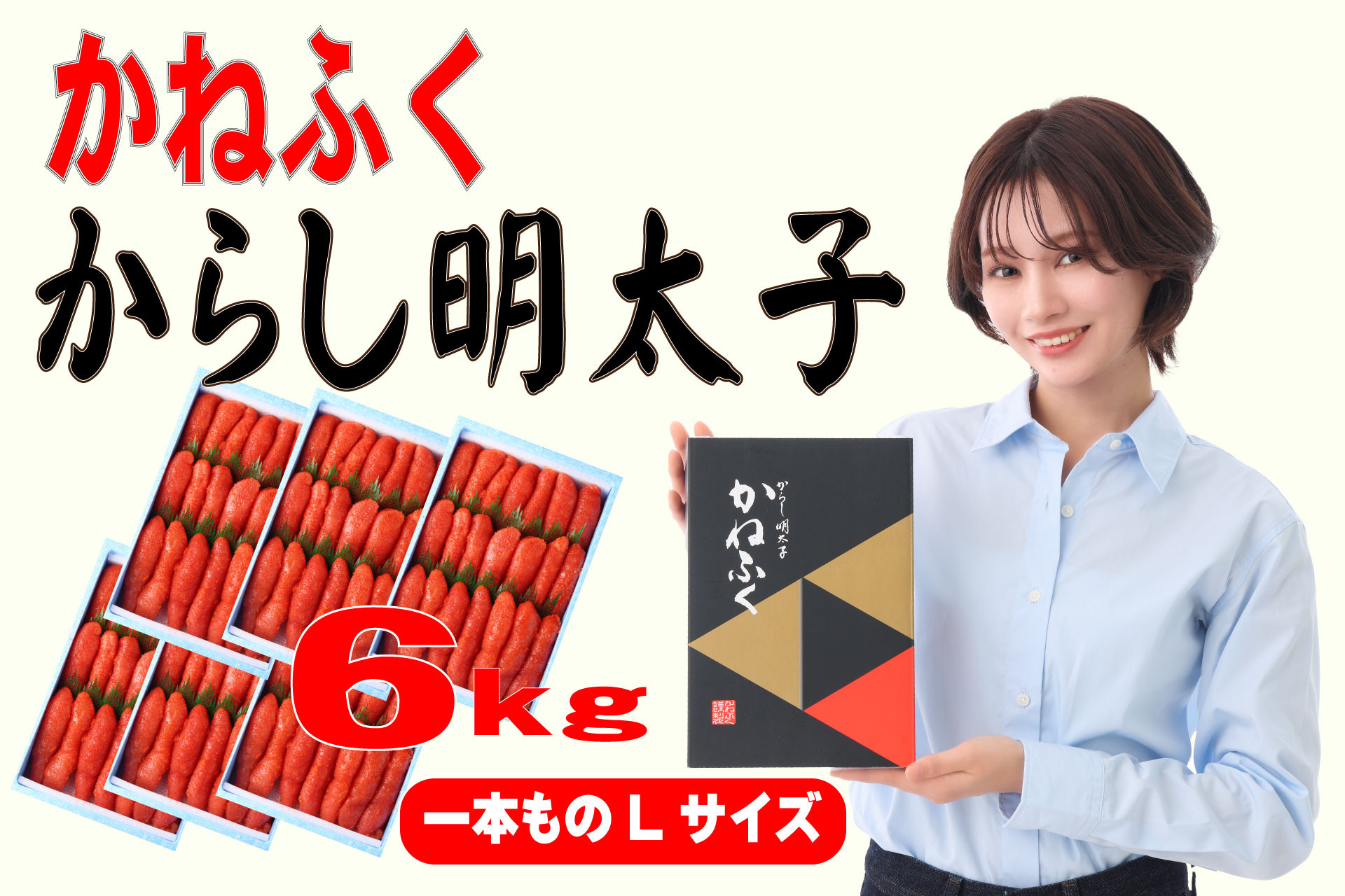 魚市場などでしか見られない業務用サイズ! 3F56 かねふく 6kg 辛子明太子 Lサイズ(1本物×6)