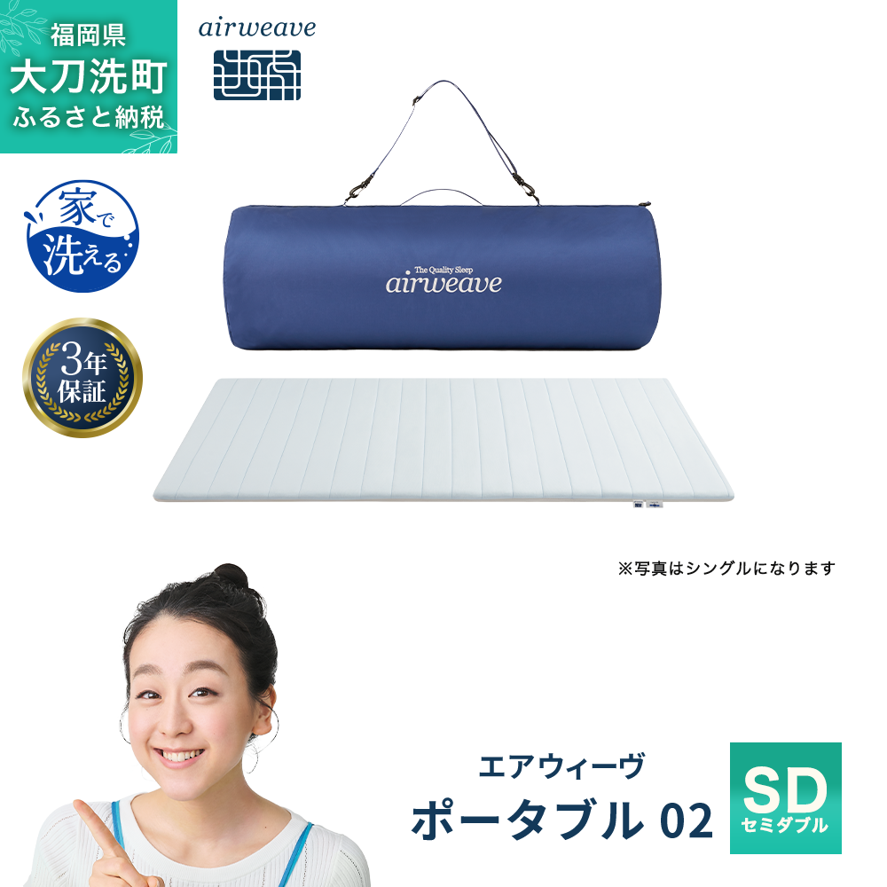 エアウィーヴ ポータブル 02 セミダブル ベッドマットレス ベッド マットレス セミダブル ダブル クイーン オールシーズン対応 ぐっすり ホテル 安眠 快眠 健康 高反発 腰 肩 熟睡 寝具 寝心地 新生活 洗える 洗濯可 送料無料 体圧分散 大人気 日本製