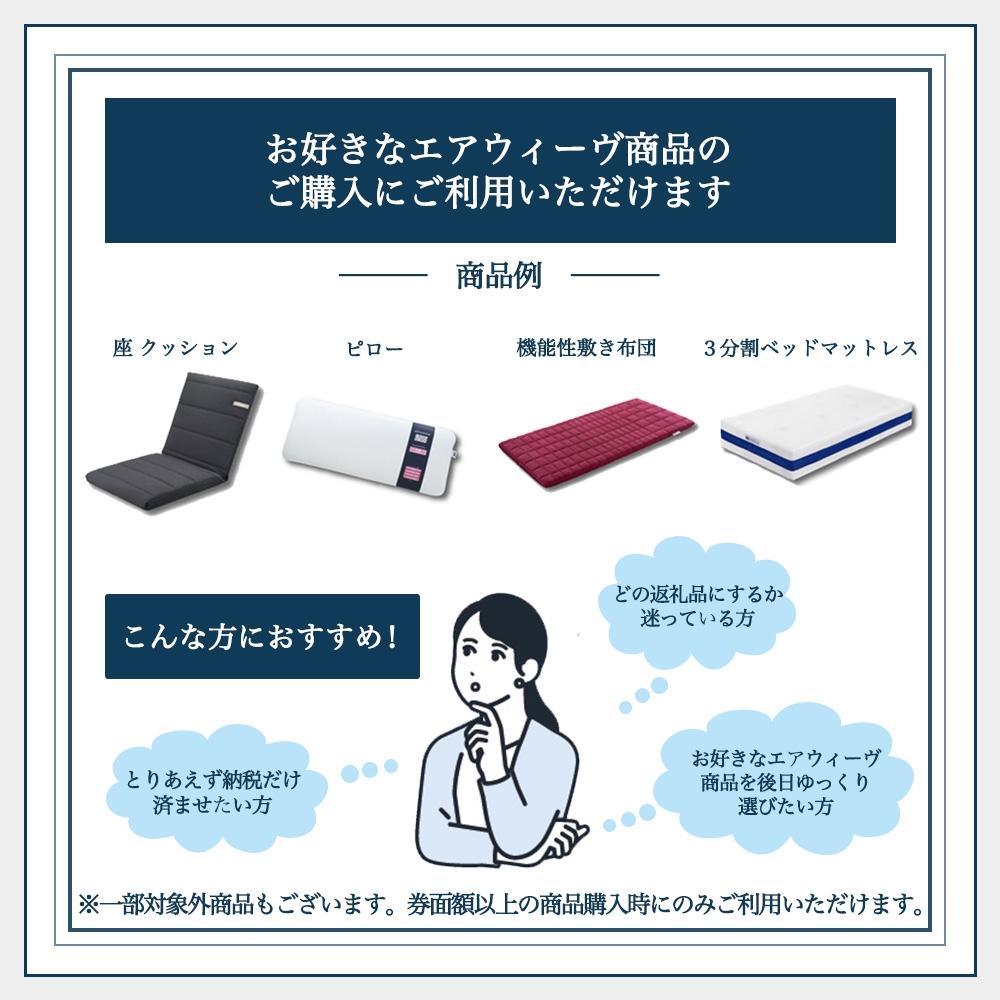 エアウィーヴ公式ECサイトにて、お好きな商品を購入いただけるギフト券です。