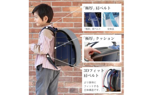 肩紐の内径を長く、外形を短くした3D構造のショルダーベルトは肩からわき腹に沿った立体的なベルト構造で体とランドセルをぴったり密着する姿勢サポート設計です。