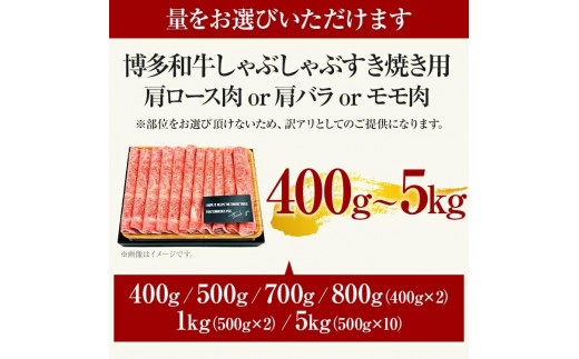《通常配送or先行予約》訳あり 博多和牛しゃぶしゃぶすき焼き用(肩ロース肉・肩バラ肉・モモ肉)400g 500g 700g 800g 1kg 5kg 黒毛和牛 お取り寄せグルメ お土産 福岡土産 MEAT PLUS
