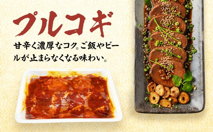 プルコギは甘辛く濃厚なコク、塩ダレはさっぱりとした旨み、味噌ダレはコク深い風味が特徴。